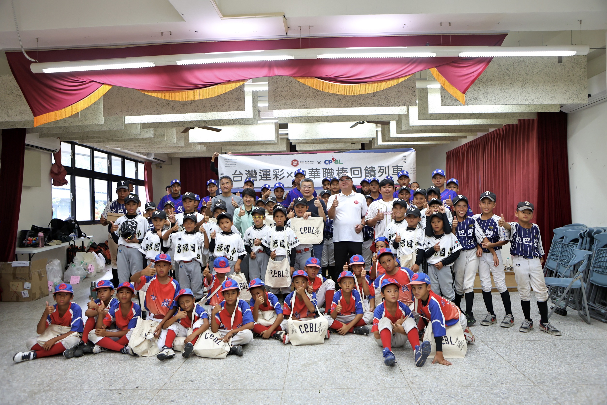 【8/21花蓮】結束台東的觀賽行程後,中華職棒回饋列車今(21)日駛抵花蓮平和國中棒球場,舉辦基層棒球回饋活動,邀請新城國小、富源國小、太巴塱國小與光復國中等四所學校的小球員參加棒球教室。下午,中華職棒蔡其昌會長親臨現場進行捐贈儀式,致贈四校全新球具與裝備,盼能將職棒的熱血精神傳承給下一代,並勉勵孩子們努力精進、勇敢追夢。